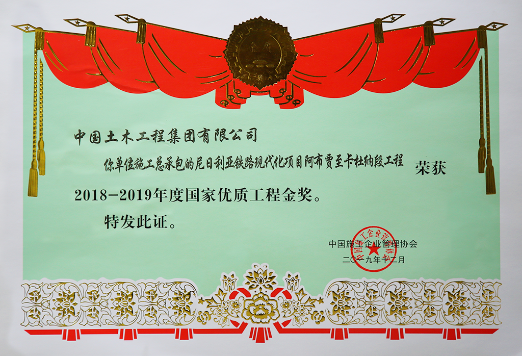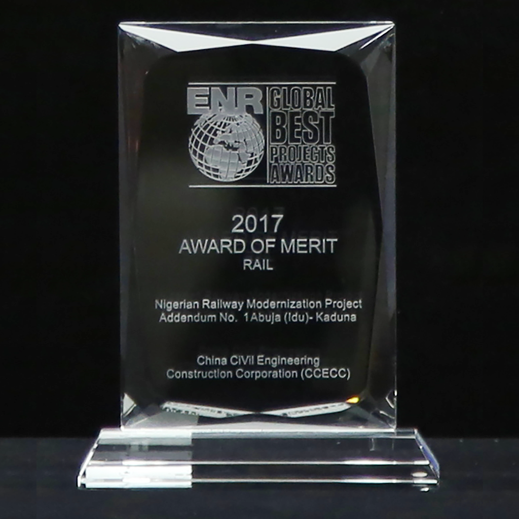 尼日利亞鐵路現(xiàn)代化項(xiàng)目阿卡段獲得2016-2017年度中國(guó)建設(shè)工程魯班獎(jiǎng)(境外工程)、2017年ENR全球優(yōu)秀工程獎(jiǎng)(軌道交通類)、2018-2019年度國(guó)家優(yōu)質(zhì)工程金獎(jiǎng)