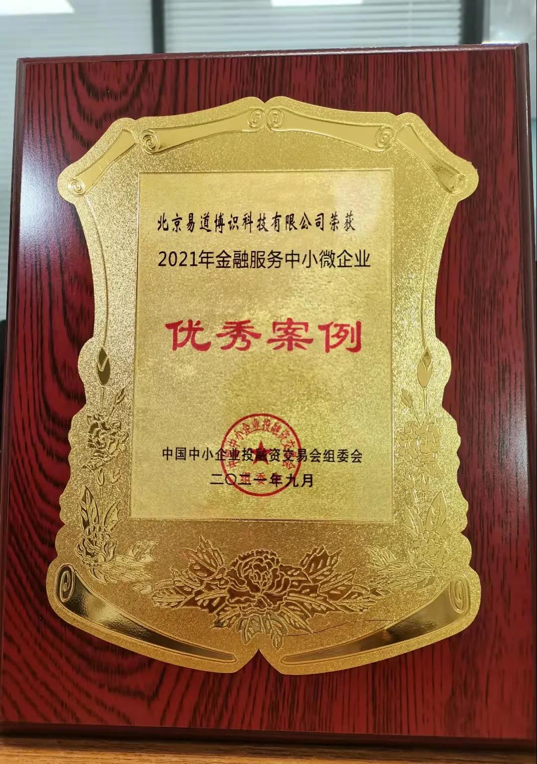 日前,由國家發改委批準,中國中小企業協會發起,聯合中國銀行業協會等國家級行業協會共同舉辦的第九屆中國中小企業投融資交易會在北京順利開幕。其中,“2021年金融服務中小微企業案例征集活動”結果正式揭曉,易道博識憑借“智能結構化平臺”獲得“2021年金融服務中小微企業優秀案例”榮譽。