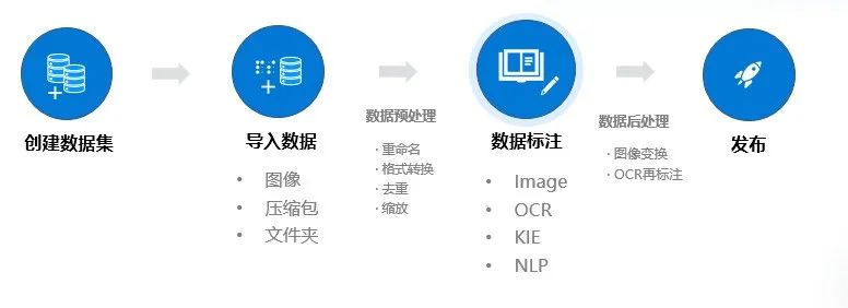 數據平臺主要功能包括數據管理、數據處理、樣本擴充、數據標注與采集。數據平臺內置exLabeler標注客戶端,提供強大專業的CV、OCR、結構化和NLP任務標注功能。同時,數據平臺還支持單人和團隊標注模式。
