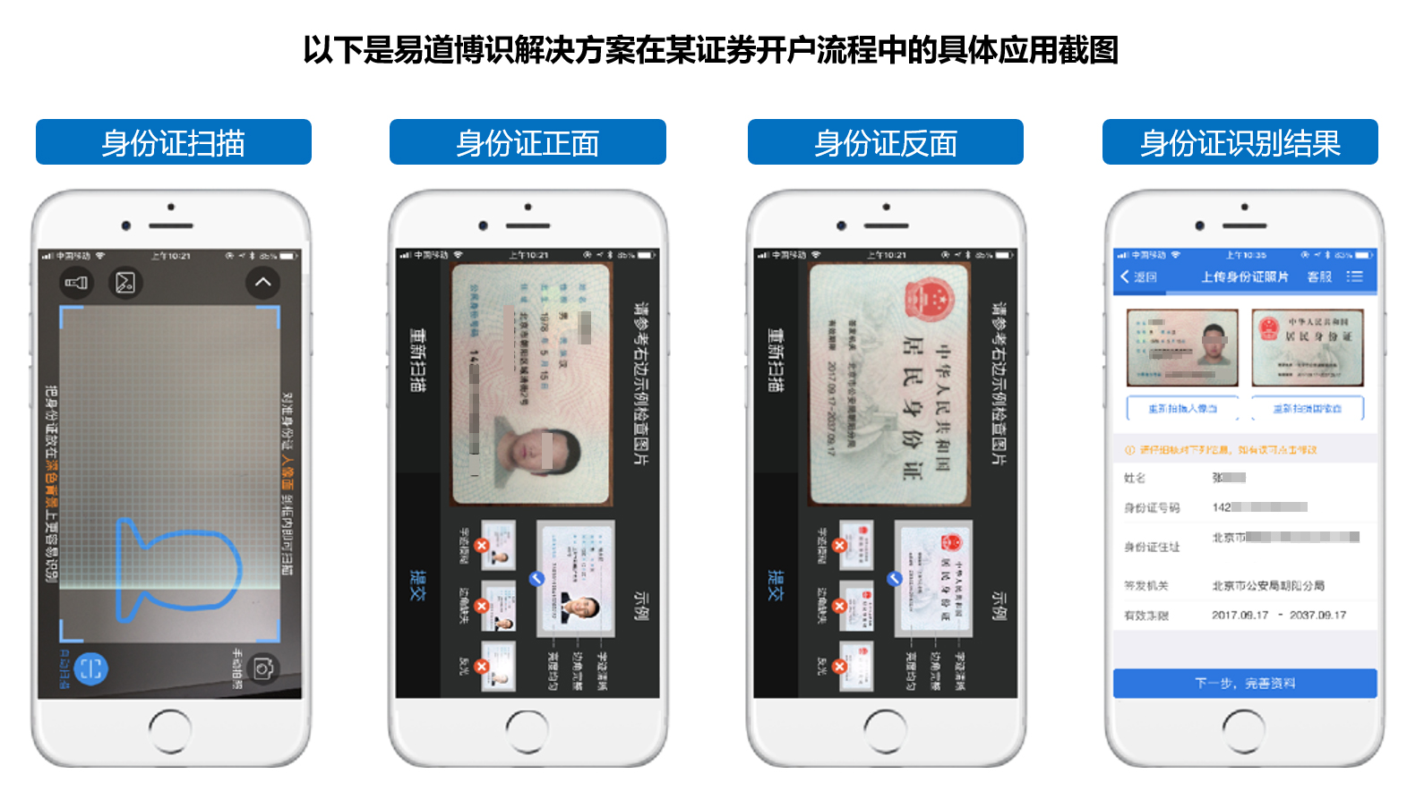 除了服務器端的高效識別能力,易道博識還開發了“易識移動端SDK”。這款SDK在移動設備上的性能表現與服務器端相媲美,大大提升了移動應用中的識別效率與穩定性。這對于需要在移動設備上完成身份證識別的場景,如遠程開戶、保險雙錄等,提供了極大的便利。