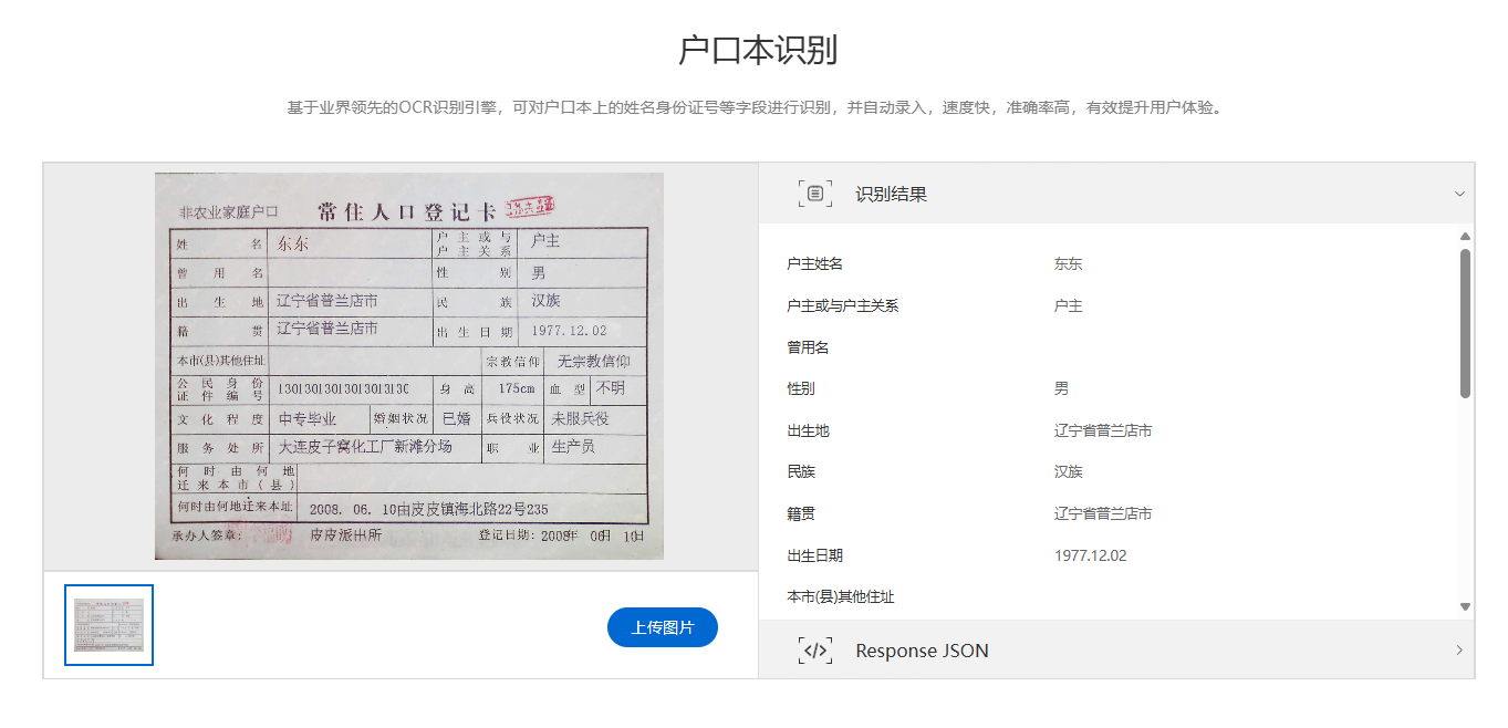 在新生兒建檔、戶(hù)口遷移以及個(gè)人信貸申請(qǐng)等場(chǎng)景中,戶(hù)口本OCR識(shí)別展現(xiàn)了巨大的優(yōu)勢(shì)。通過(guò)OCR技術(shù),系統(tǒng)能夠自動(dòng)讀取并解析戶(hù)口本上的關(guān)鍵信息,如姓名、性別、出生地、出生日期、身份證號(hào)等。這一功能大大縮短了信息核驗(yàn)和登記的時(shí)間,同時(shí)顯著降低了人工操作帶來(lái)的錯(cuò)誤風(fēng)險(xiǎn)。