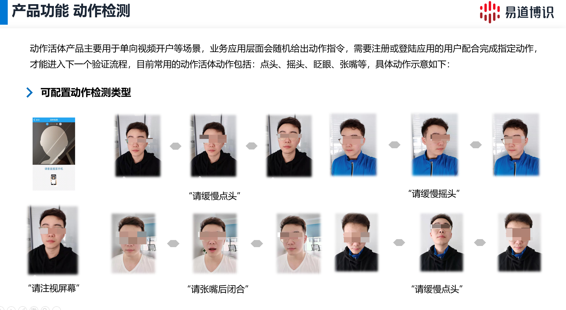 除了身份證識別技術(shù),易道博識的解決方案還集成了先進的活體檢測技術(shù)?;铙w檢測能夠有效識別視頻或照片中的人臉是否為真實活體,防止利用照片、視頻、面具等手段進行欺詐,保障在線證券開戶的安全性?;铙w檢測技術(shù)確保證券開戶的安全性。