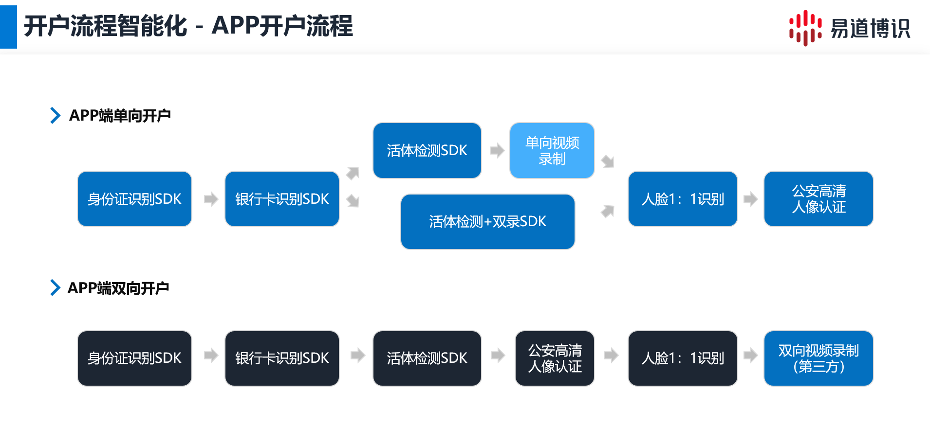 然而,非現(xiàn)場開戶模式在帶來便利的同時,也伴隨著新的挑戰(zhàn),尤其是在身份信息真實性驗證和安全性保障方面,如何有效防范身份冒用、欺詐開戶等風(fēng)險,成為證券公司亟需解決的關(guān)鍵問題。易道博識憑借其在人工智能領(lǐng)域深厚的技術(shù)積累,推出了證券開戶場景的智能化解決方案,為證券開戶流程的安全性和效率提供有力保障。