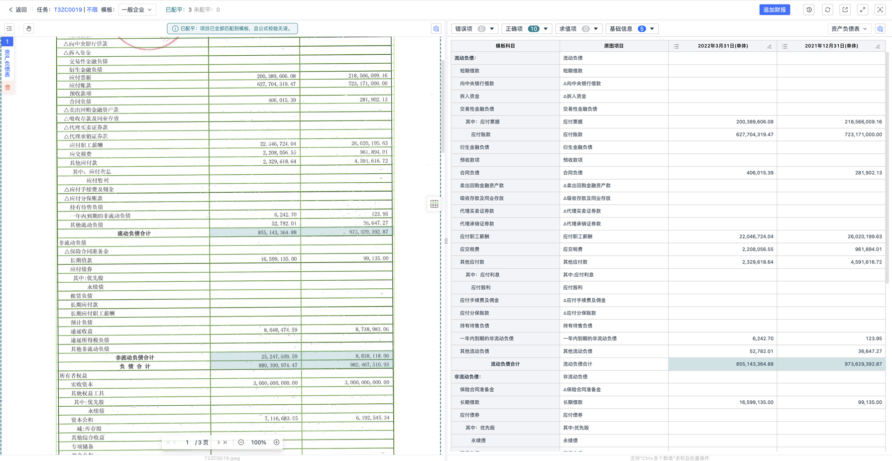●當(dāng)發(fā)現(xiàn)潛在的不一致或錯誤數(shù)據(jù)時,系統(tǒng)會高亮顯示相關(guān)數(shù)據(jù),并且科目數(shù)值之間可以相互定位和對照顯示,極大地便利了財務(wù)人員進(jìn)行手動復(fù)核與修正,實現(xiàn)了人機協(xié)同,從根本上提升了財務(wù)數(shù)據(jù)的準(zhǔn)確性和可靠性,顯著提高了整體工作效率。