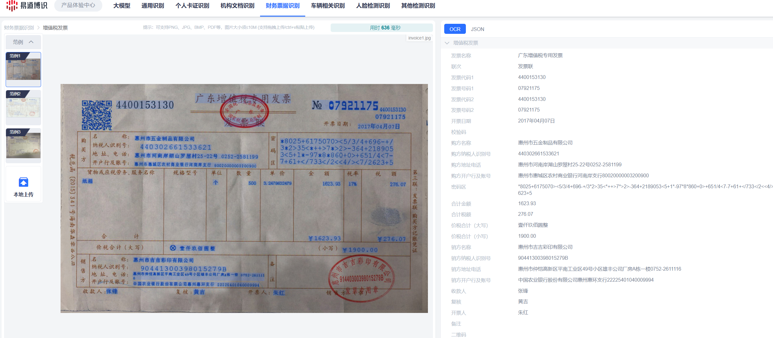 考察一:發(fā)票識別的全能性與精準(zhǔn)度