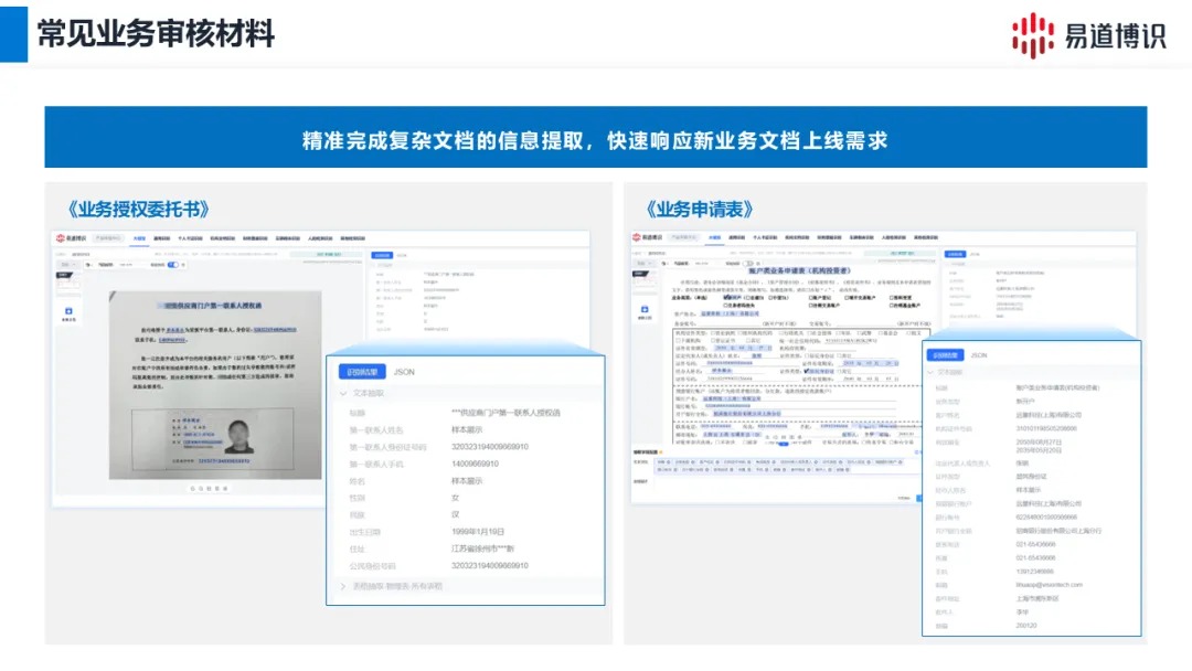 第一,OCR對于版式固定的卡證識別效果,但是識別標準化文檔時,比如開戶申請表、風險揭示書、授權委托書等,識別效果就會大打折扣。想要實現文檔版式高精度抽取需要針對這個版式進行單獨的開發和模型訓練,成本高,周期長,難以快速響應業務需求的變化。