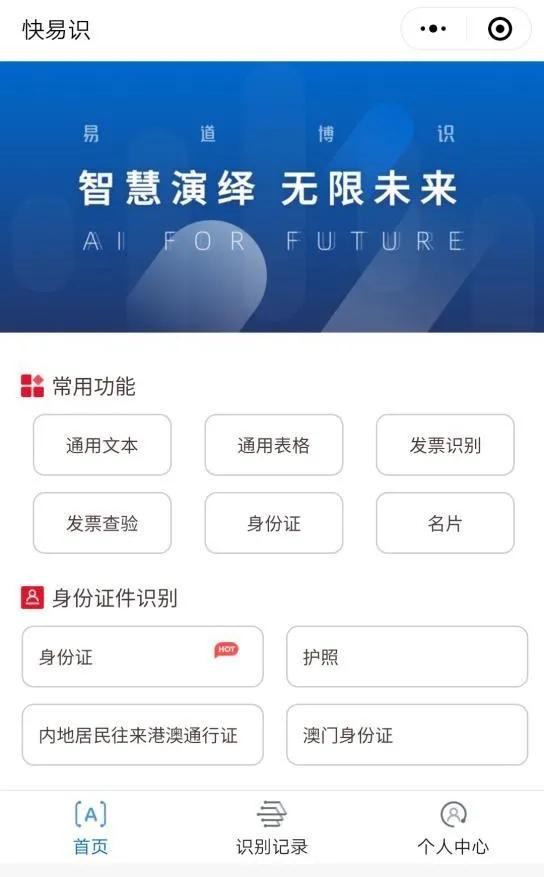 近期易道博識上線快易識小程序,內(nèi)含多種常用模板識別,可在微信小程序中搜索【快易識】體驗。