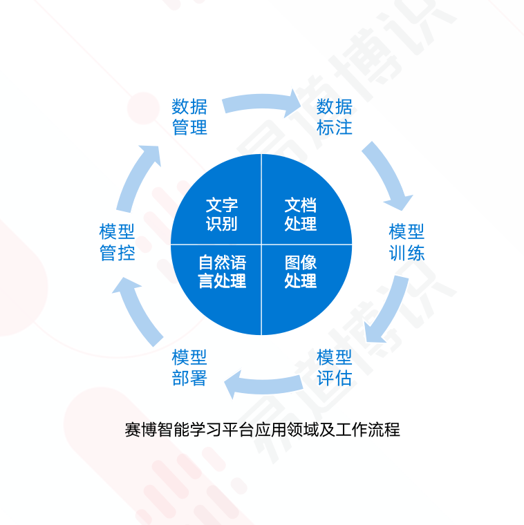 賽博智能學習平臺是易道博識自主研發的一站式機器學習訓練平臺,提供文字識別、文檔處理、圖像處理、自然語言處理領域數據驅動模型應用高效解決方案。用戶可利用平臺自主完成數據管理、數據標注、模型訓練、模型評估、模型部署、模型管控全流程工作。