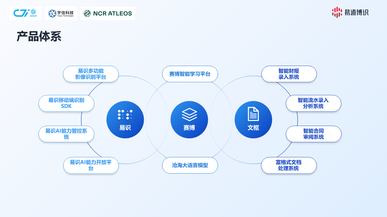 易道博識長期專注于人工智能技術的研發(fā)和應用,在計算機視覺、機器學習等領域積累了深厚的技術底蘊,并在此基礎上自主研發(fā)了“易識”、 “賽博”、“文樞”三大產品體系,廣泛服務于銀行、券商、保險機構在遠程開戶、集中運營、智能審核、影像管理、盡職調查、投保理賠、內部運營管理等眾多業(yè)務場景。目前,易道博識已為國內超200家大型金融機構、800余家各行業(yè)頭部企業(yè)提供智能產品與服務。