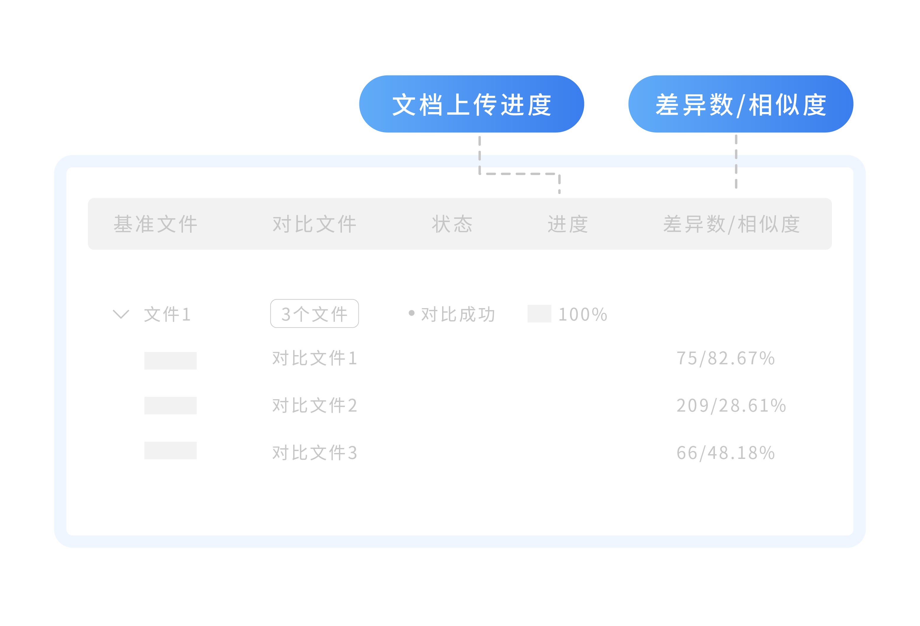 實時監控展示文檔上傳進度,差異數及相似度量化展示,降低學習使用成本。