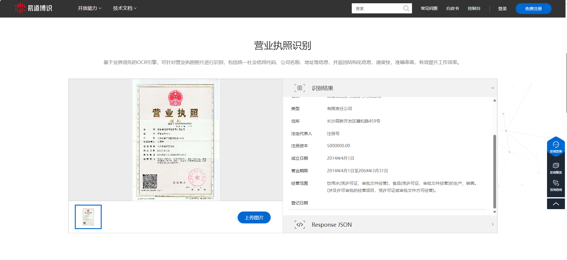 易道博識(shí)的“易識(shí)”產(chǎn)品線不僅在營業(yè)執(zhí)照識(shí)別方面具有強(qiáng)大能力,還涵蓋了卡證識(shí)別、票據(jù)識(shí)別、文檔識(shí)別等多種功能,能夠滿足不同業(yè)務(wù)場景的需求。不論是金融行業(yè)的開戶、企業(yè)年檢,還是行政執(zhí)法的現(xiàn)場檢查,易道博識(shí)的OCR技術(shù)都展現(xiàn)出了極高的效率和準(zhǔn)確性。通過靈活的部署方式,“易識(shí)”產(chǎn)品既支持私有化部署,也可以通過API接口調(diào)用,適應(yīng)不同客戶的需求。特別適合遠(yuǎn)程開戶等對識(shí)別準(zhǔn)確性和實(shí)時(shí)性要求較高的場景。未來,隨著技術(shù)的不斷發(fā)展,營業(yè)執(zhí)照OCR識(shí)別技術(shù)將逐步拓展至更多的應(yīng)用領(lǐng)域,為企業(yè)和個(gè)人帶來更加智能化的服務(wù)體驗(yàn)。