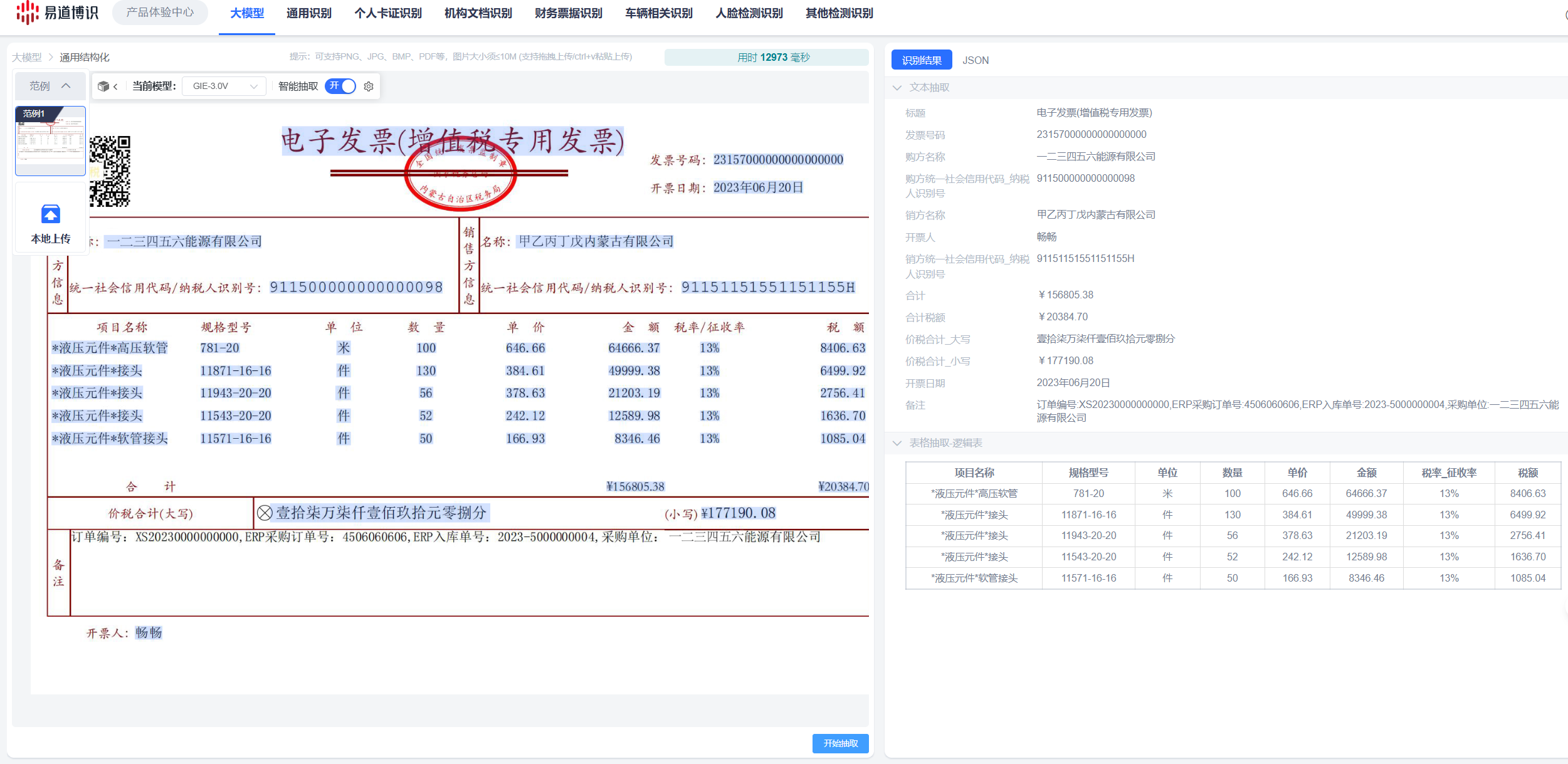 為此,易道博識通過工程化手段,將復雜的調用邏輯封裝成標準API。用戶只需提供圖像和待提取的字段列表,系統即可自動構建提示詞并返回結構化的JSON結果,其使用體驗與傳統OCR接口一致。